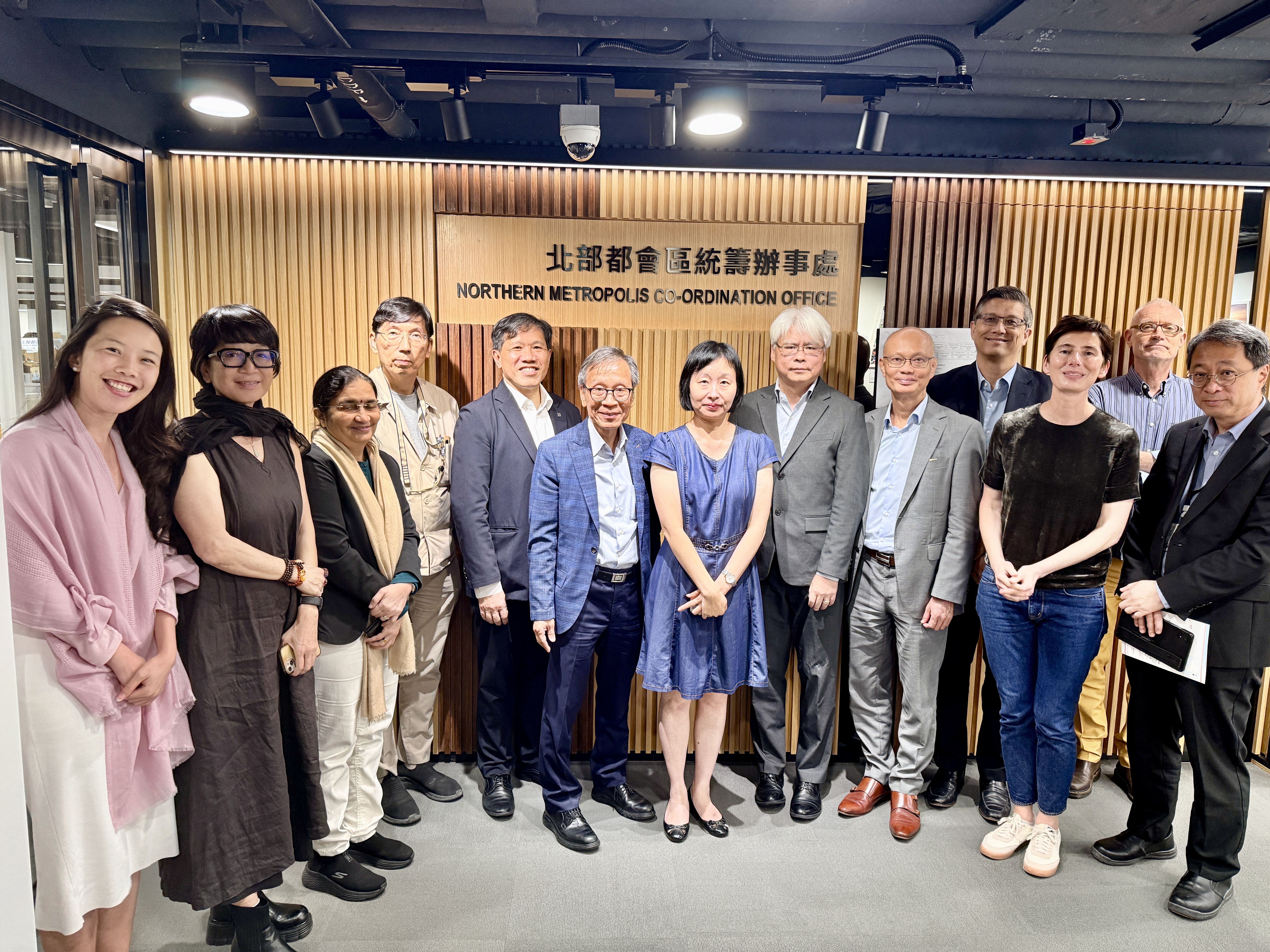 Members of the Council and Public Affairs Committee of the Hong Kong Institute of Urban Design (HKIUD) paid a return visit to the Northern Metropolis Coordination Office (NMCO) on 13 April 2026. We were pleased to be received by Ms Lindo So, Director of NMCO, and Mr K. W. Ng, Head of the Planning & Development Team (2). Ms So and Mr Ng provided an update on the latest progress of the Northern Metropolis planning. During the visit, HKIUD also explored the possibility of organising a series of Urban Design Workshops in collaboration with NMCO in the coming months.