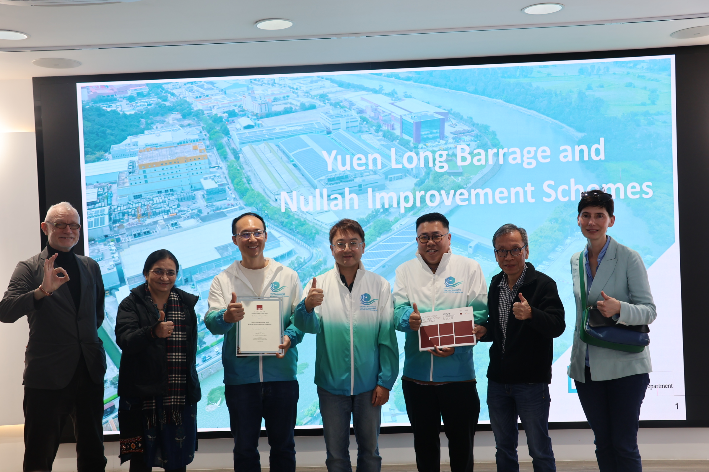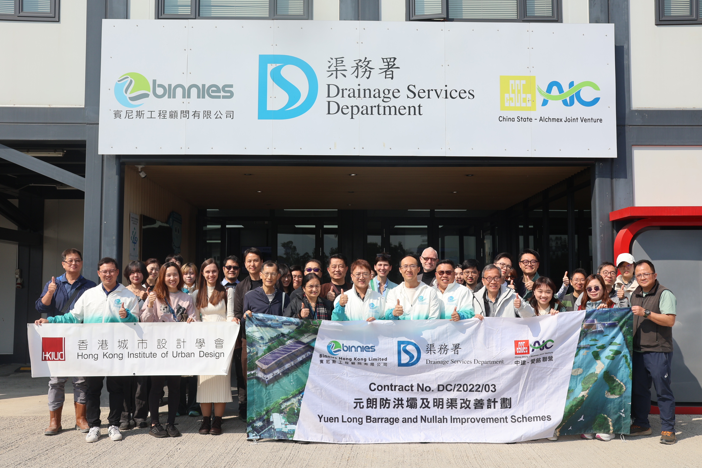 The Programs and Events Committee (PEC) recently organised a tour to the Yuen Long Barrage AND Nullah Improvement Schemes, which aims for flood prevention and improvement of water quality of the Nullah as well. Dr Sujata Govada, Chairperson of the PEC, Mr Benny Chan, President, Mr. Barry Wilson, Immediate Past President and Dr. Vera Kleesattel, Chairperson of Membership and Accreditation Committee were joined by around 25 participants on the tour on 17 Jan 2026. The tour started with an introduction of the Yuen Long Barrage project by Mr Clement Wong, DSD along with others from Binnies Hong Kong Limited and China State-Alchmex Joint Venture, the Consultant team sharing some of the aspects of engineering, design, construction, technology and community engagement while addressing some of the key challenges encountered. They also highlighted the use of innovative urban design and landscape strategies to better integrate flood control infrastructure and ecological revitalization with public space design as well. This was followed by a site visit and a Q&A session. The project is expected to be completed in 2030.