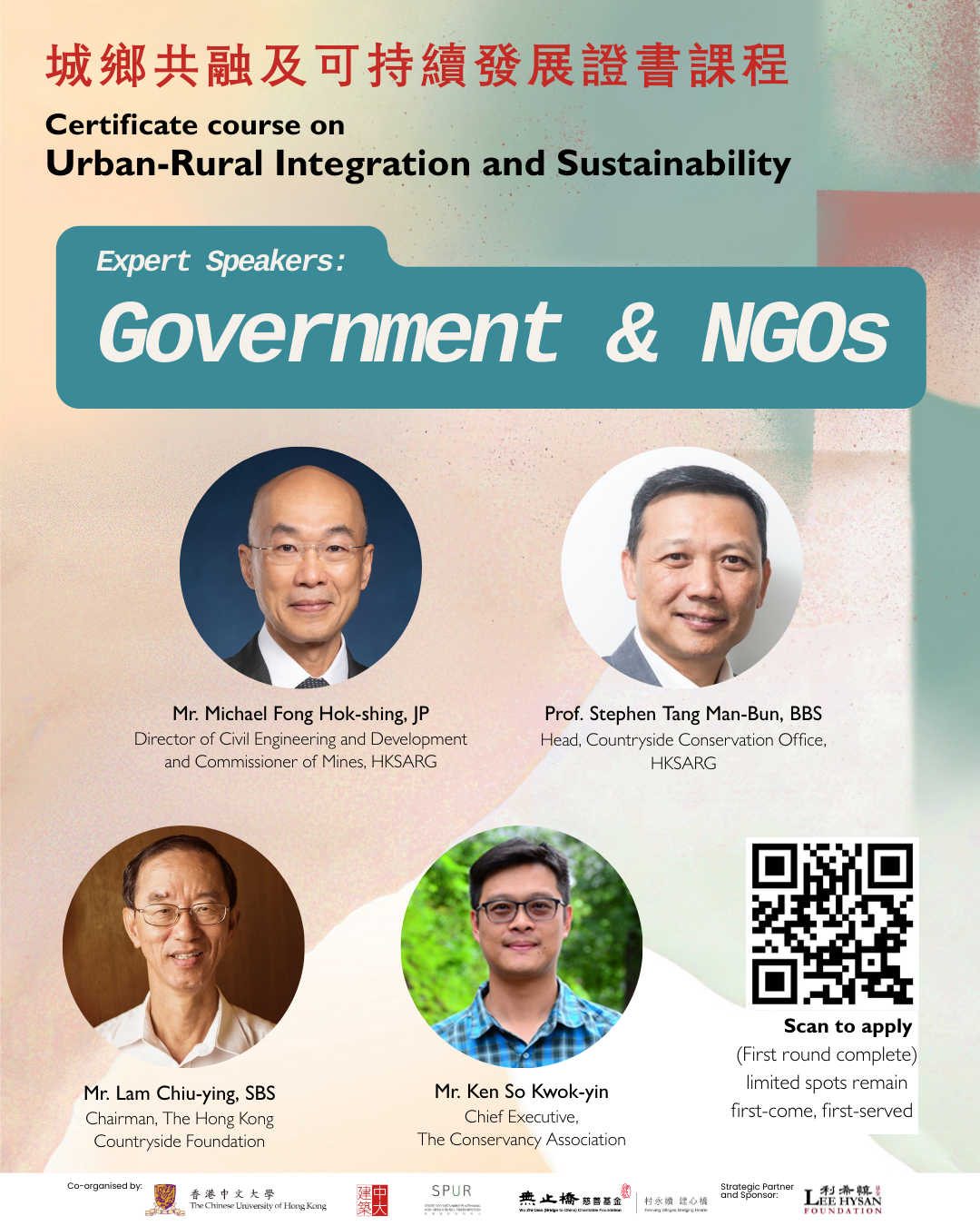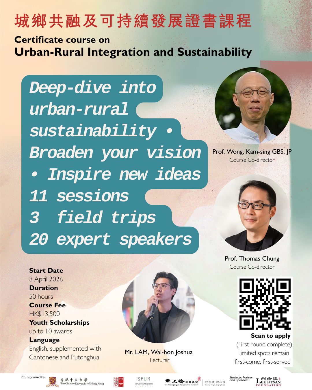 Hong Kong’s first certificate course dedicated to urban–rural integration, sustainable development, and rural revitalisation, co-organised by CUHK School of Architecture, SPUR, and Wu Zhi Qiao Charitable Foundation.